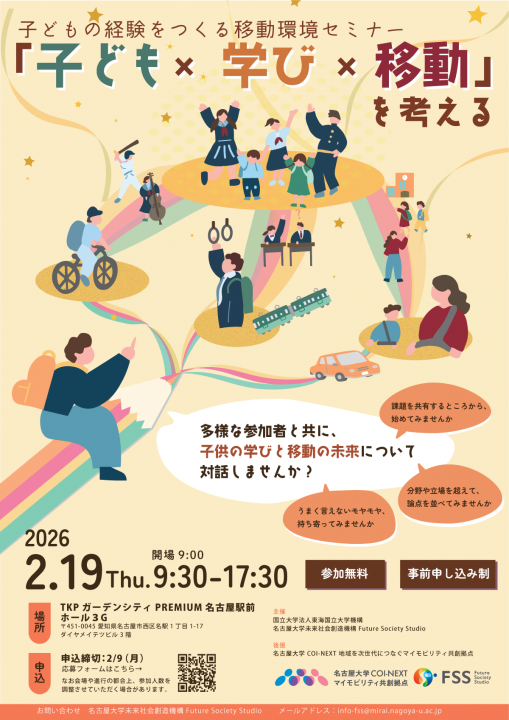 2月19日(木)に、名古屋駅近隣の会場にて、研究開発課題5の取り組みのひとつである「家庭内送迎」に関するセミナーが開催されます。