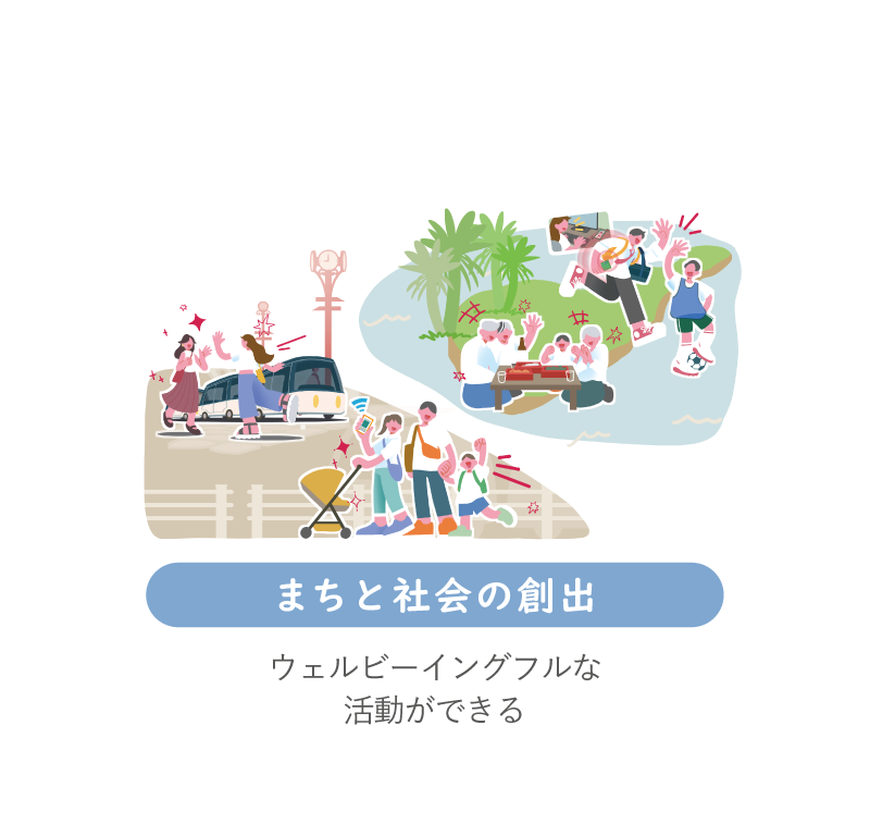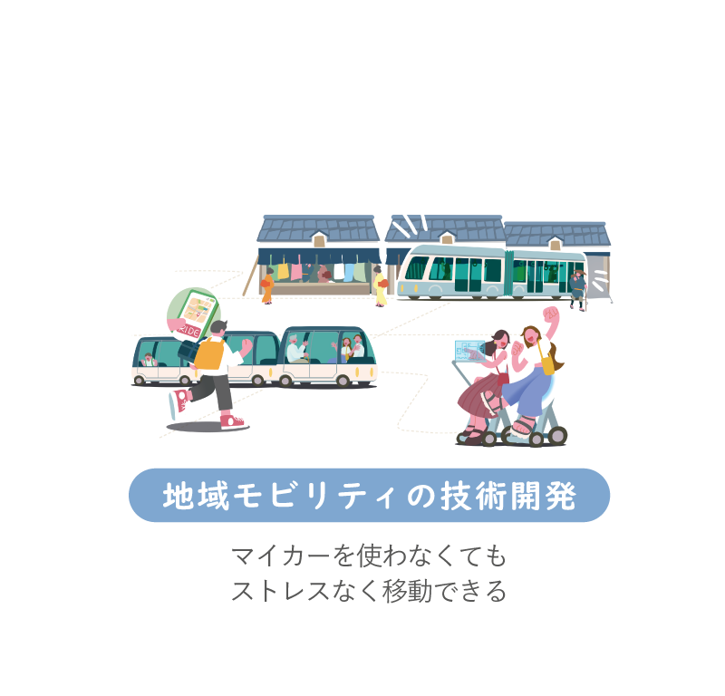 本拠点では、『みんなの「⾏きたい」「会いたい」「参加したい」をかなえる超移動社会』をビジョンに掲げ、このような地域において、マイカーを使わない(運転できない、運転したくない)⼈にも社会に公平なアクセスができるような超移動社会を⽬指します。
